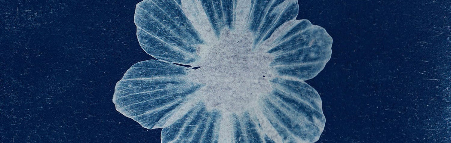 Los cianotipos son impresiones fotográficas de color azul prusia. Se producen mediante un proceso químico manual que no utiliza tinta. La técnica emplea sales de hierro fotosensibles que reaccionan a la luz ultravioleta, generalmente la luz solar.